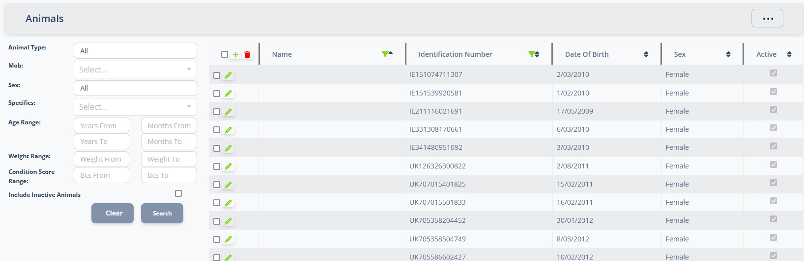 | Specifics | Filter by additional criteria such as pregnancy status or cull list animals |