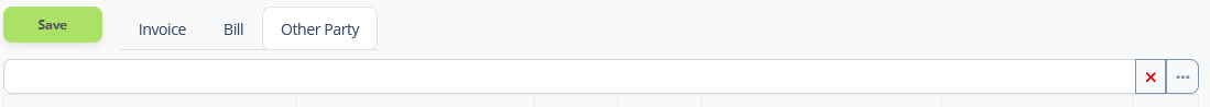 | Invoice / Bill / Other Party tab | Switches the source of the transaction |