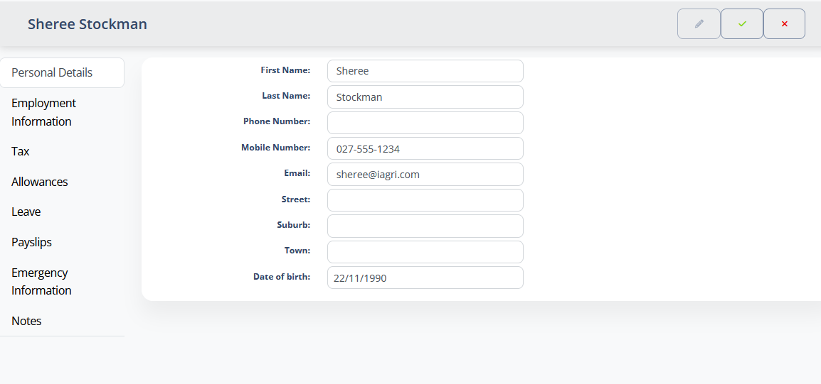 The email address captured here will be used to send the staff member payslips and other employment related messages.