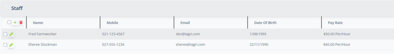 iAgri enables you to manage your Staff Member records within the system. Payroll, time sheets and leave management tasks can all be performed within iAgri. The starting point for this is the Staff Members page, where you can define your staff members and record their personal, salary and taxation information.